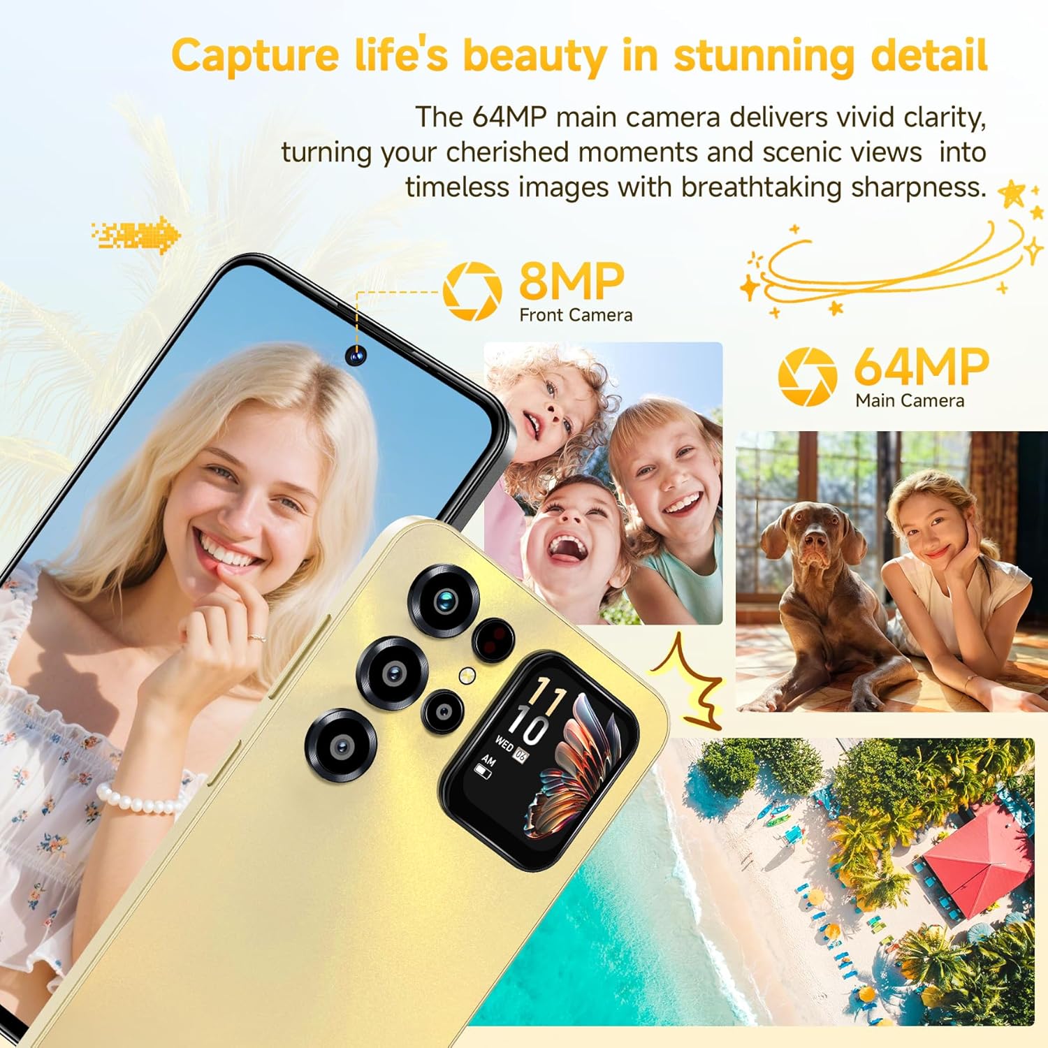 Das OUKITEL C68 Plus verfügt über eine Flaggschiff-Grade-64MP-Hauptkamera, die mit einer separaten 0,08MP-Tiefenkamera zusammenarbeitet, um präzise Tiefenwirkung und natürlich-weiche Bokeh-Effekte mit dreidimensionaler Ausdruckskraft zu erzeugen. Jedes Bild erhält so einen cinematischen Charakter. An der Front sorgt eine 8MP-Schönheits-Selfiekamera für intelligente Optimierung von Hautton und Gesichtsdetails, die stets klare, natürliche und lebendige Aufnahmen liefert.