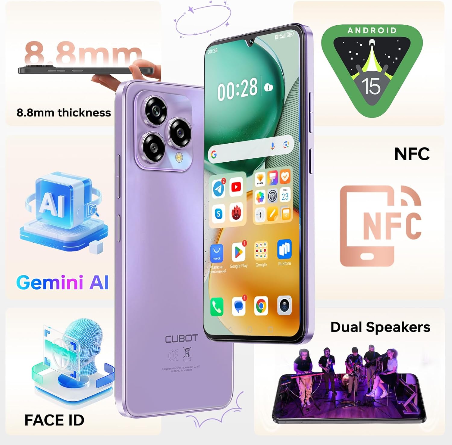 CUBOT A40(2025) Android 15 Smartphone Ohne Vertrag, 6.88″ HD+120Hz Handy Ohne Vertrag, 12GB+256GB/1TB Handy Günstig, 48MP+16MP, 5100mAh Simlockfreie Handys, 4G Dual SIM/Face ID/NFC/Dual Lutsprecher