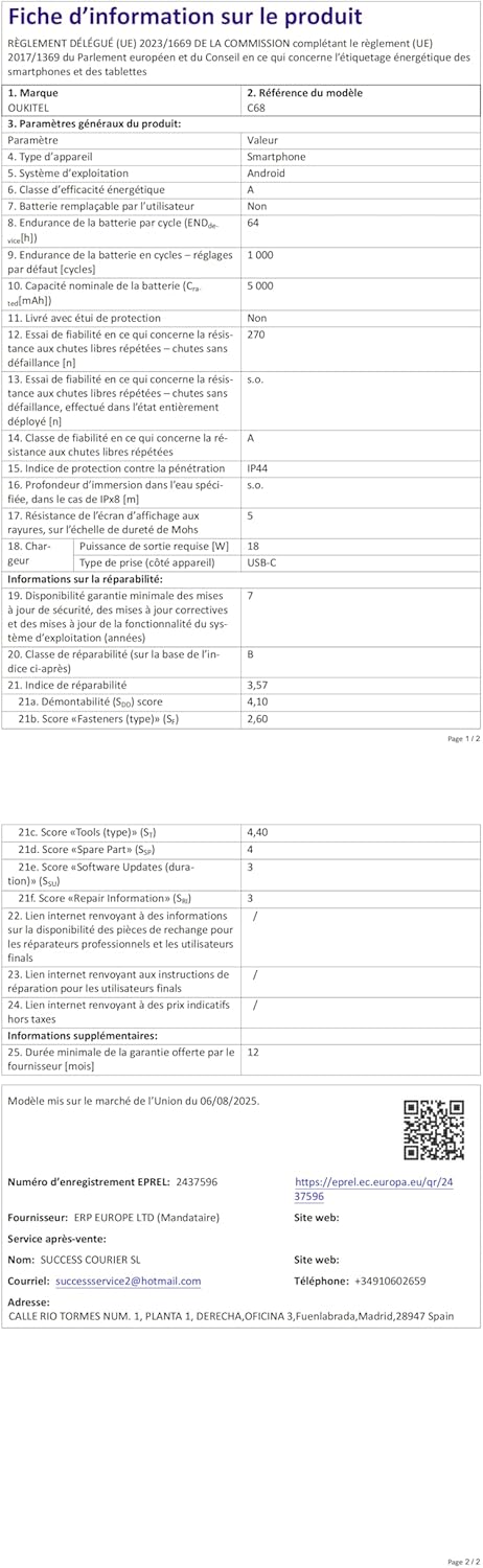 Das OUKITEL C68 Smartphone ist ein leistungsstarkes Gerät, das mit seinem großen Display, seiner hohen Bildwiederholfrequenz und seinem enormen Speicher eine unvergleichliche Leistung bietet. Die hochauflösenden Kameras, die lange Akkulaufzeit und die Schnellladefunktion machen es zum perfekten Begleiter für den Alltag. Mit seinen vielfältigen Funktionen und seiner eleganten Designs ist das OUKITEL C68 Smartphone ein unschlagbares Angebot für alle, die ein hochleistungsfähiges und vielseitiges Gerät suchen.