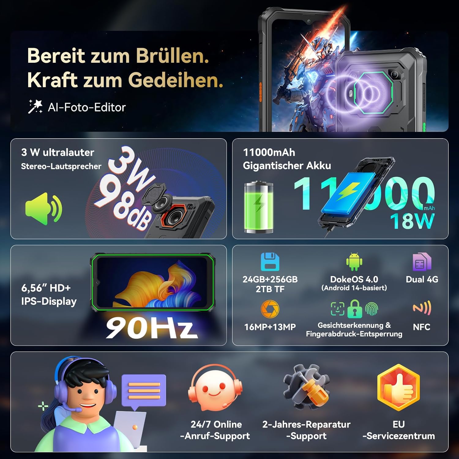 Das Blackview BV6200 Plus ist ein robuster und leistungsfähiger Begleiter für alle, die ihr Smartphone in anspruchsvollen Umgebungen einsetzen möchten. Mit seinem 11000mAh-Akku, 24GB RAM und 256GB internem Speicher bietet es eine beeindruckende Leistung und Ausdauer. Im Folgenden werden wir die herausragenden Funktionen und Eigenschaften dieses Outdoor-Smartphones genauer unter die Lupe nehmen.