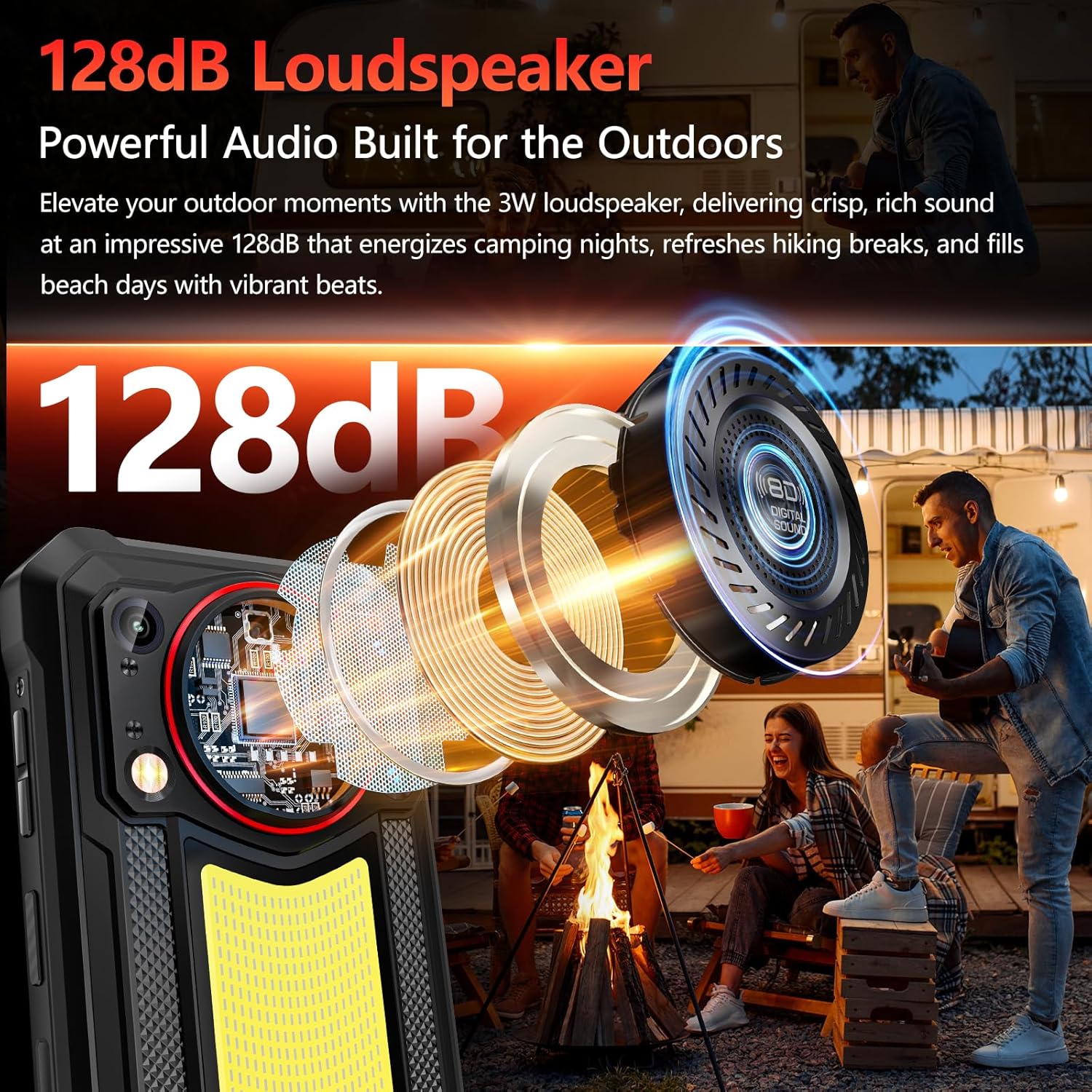 Der OUKITEL WP53 PRO verfügt über einen massiven 36mm Lautsprecher und eine leistungsstarke 3W Ausgangsleistung, die einen kristallklaren, donnernden Stereosound von maximal 128 dB liefert. Dies ermöglicht es Ihnen, jedes Detail perfekt zu hören, selbst auf lauten Baustellen oder belebten Outdoor-Camps. Der Lautsprecher ist perfekt für Musik, Anrufe oder Alarme und zieht überall die Aufmerksamkeit auf sich.