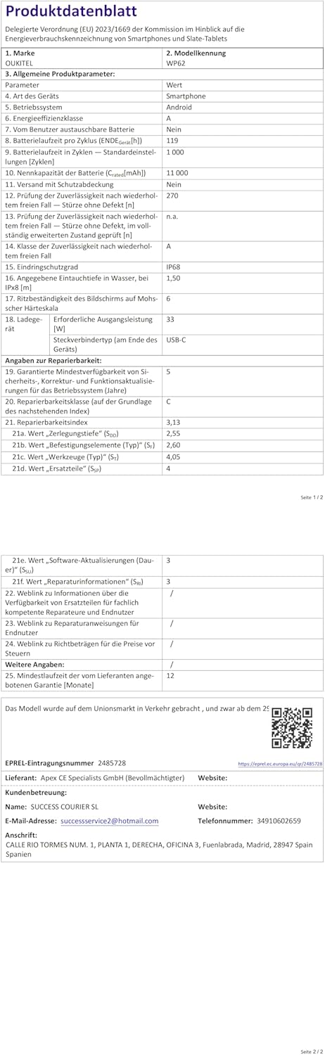 Das OUKITEL WP62 ist auch mit einer offiziellen OUKITEL-Garantie ausgestattet, die eine 30-tägige Rückgabe ohne Angabe von Gründen und ein Jahr kostenlose Garantie bietet. Darüber hinaus bietet OUKITEL langfristigen technischen Support und 24 Stunden Online-Kundendienst, was für ein sicheres Einkaufserlebnis und einen professionellen Kundenservice sorgt.